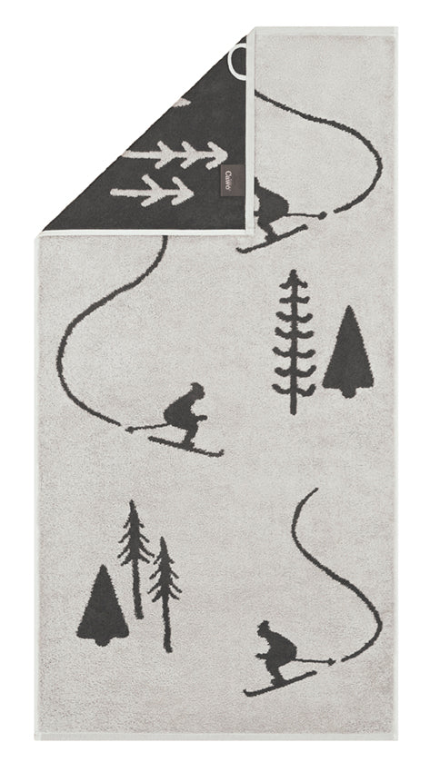 Gastendoek - Winter Edition Skiër – set van 6 - platin/basalt - 30x50 cm