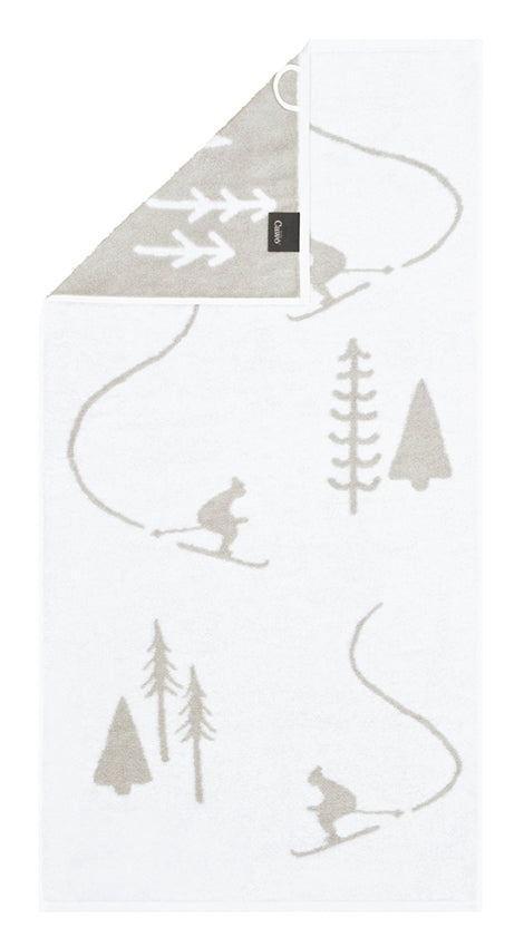 Gastendoek - Winter Edition Skiër – set van 6 - wit/platin - 30x50 cm