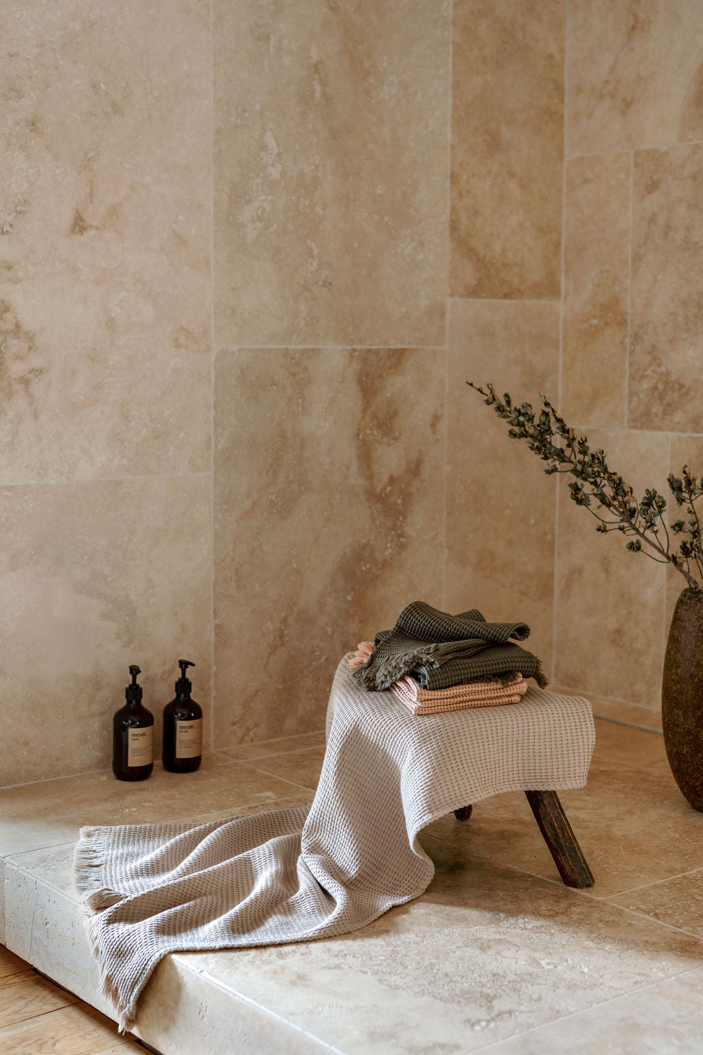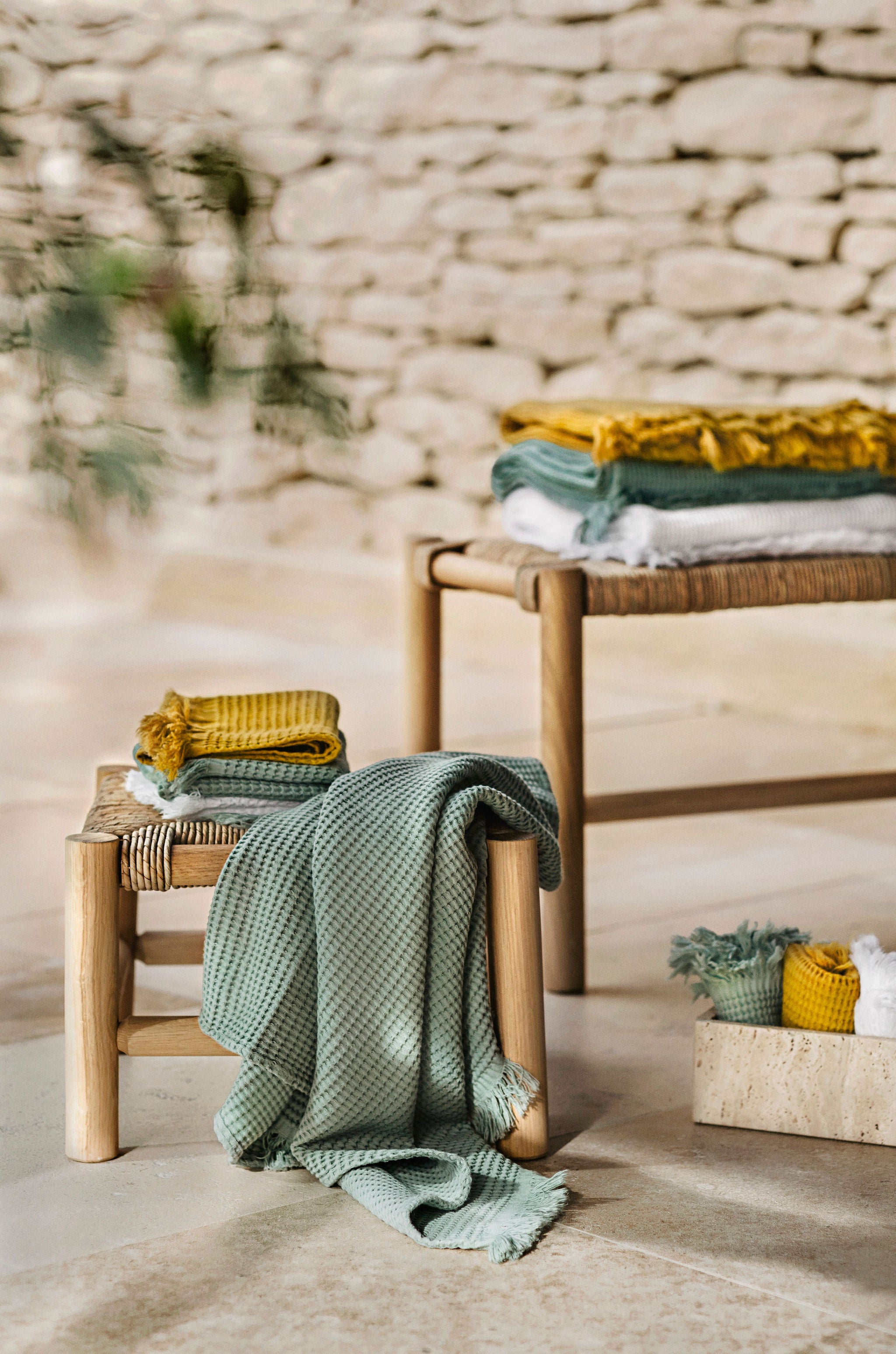 Timor is ontworpen om moeiteloos te combineren met de theedoeken van Haomy, en past bijzonder goed bij de Olbia theedoek voor een stijlvolle, natuurlijke look.